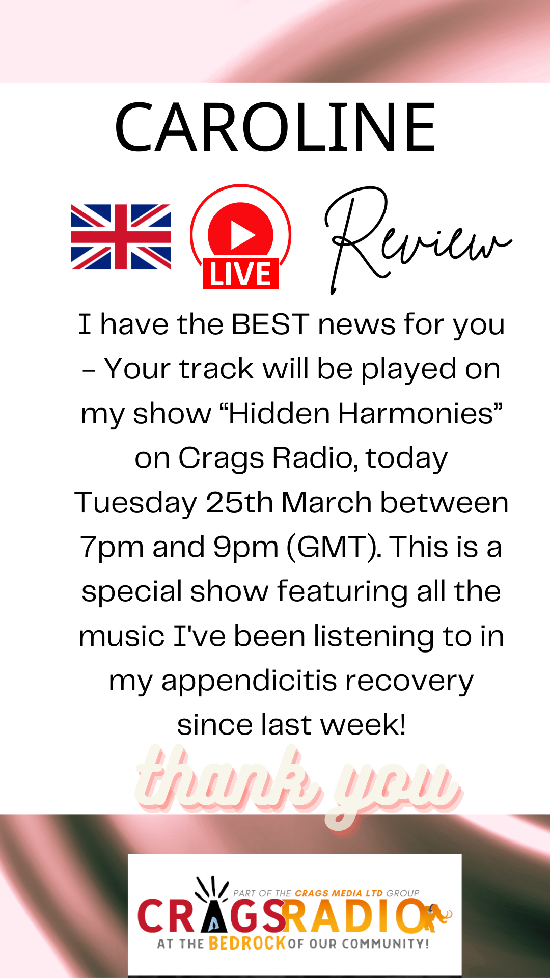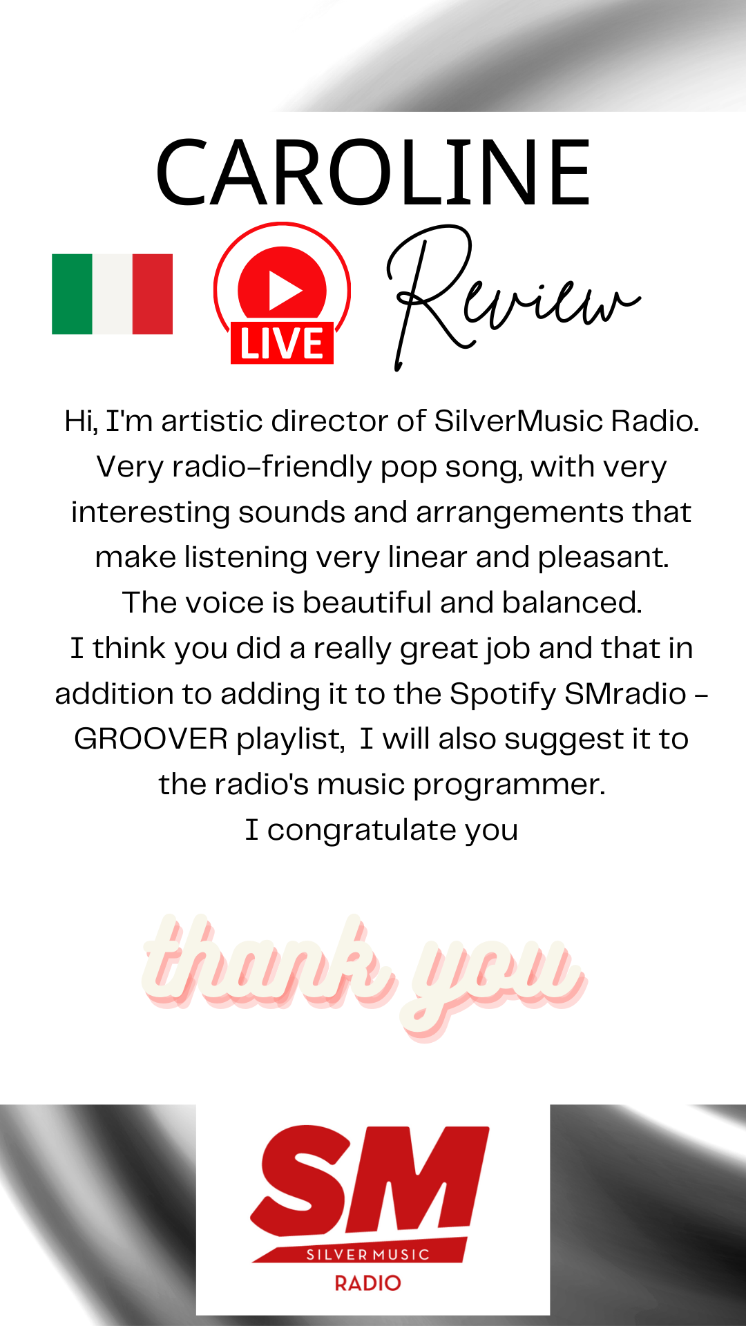 The song Caroline was completed in January 2025 and will be released in February on Spotify, Apple Music, iTunes, Instagram & Facebook, TikTok, TikTok Music (Beta), Resso, Luna, YouTube Music, Amazon. com, Pandora, Deezer, TIDAL, iHeartRadio, ClaroMusica, Saavn, Anghami, KKBox, Boomplay, Snapchat, NetEase, Tencent, Pretzel, TouchTunes, Audiomack, Yandex Music (Beta), Qobuz, Joox, Kuack Media Group (Beta), as well as many smaller providers via MediaNet, through to Dubset and other services.